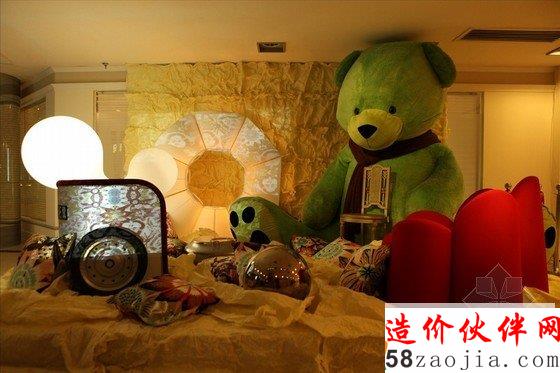 秋天是收藏的季节,以小熊作为主题。熊宝宝在冬天时希望给自己准备些好东西,食物、玩具……,它在商场中需找着自己喜欢的东西:玩具车、花、松果、蜂蜜、花布……,将它们储藏起来准备过冬。它对这些物品非常好奇,留着自己享用。熊的体量很大和家具形成反差,家具、参观者都变成它的“小玩具”。