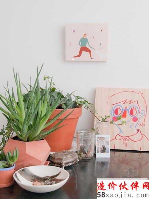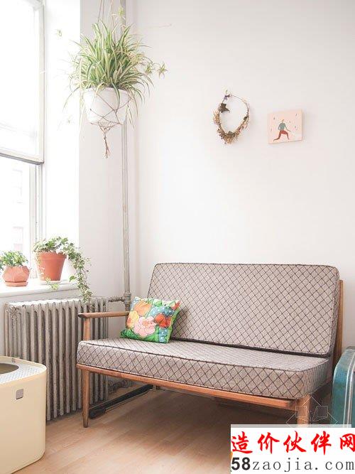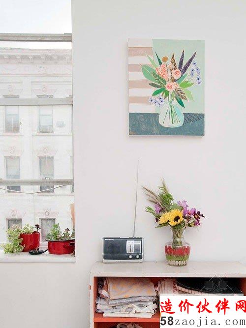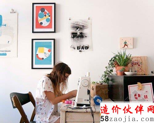 温馨小屋住宅室内设计,设计师Leah Goren每天就是在这间小房间里操作着那台并不名贵但却是心爱的缝纫机,当阳光明媚的时候,她也会和喜爱的宠物猫玩一会躲猫猫~整个房间弥漫的清淡味道就好像稀释过的水彩画,带来慢生活的喜悦。