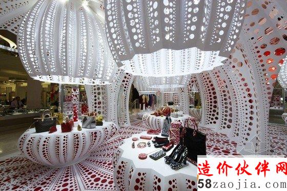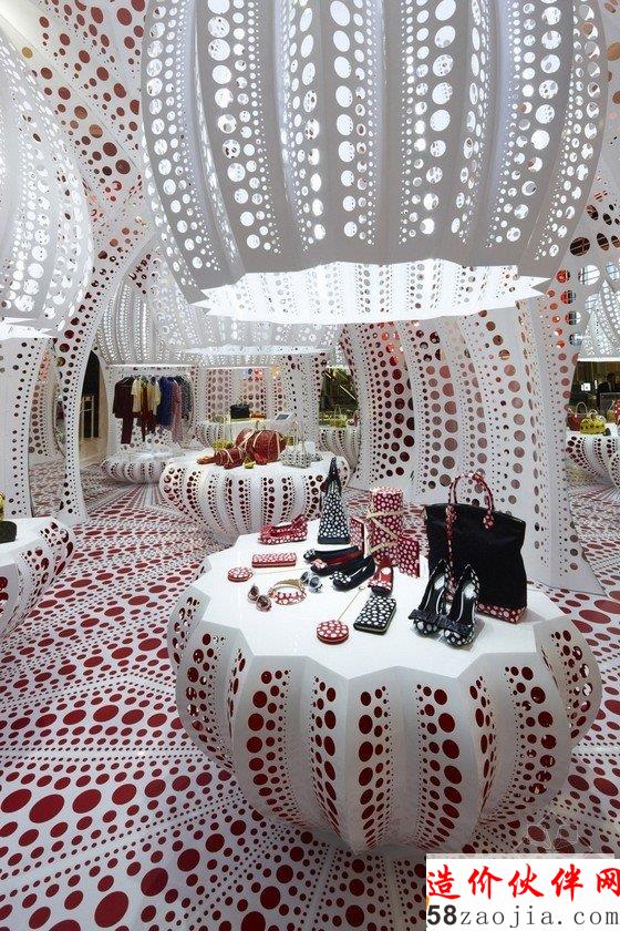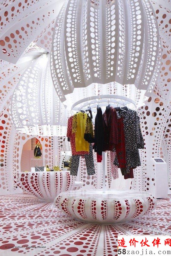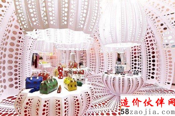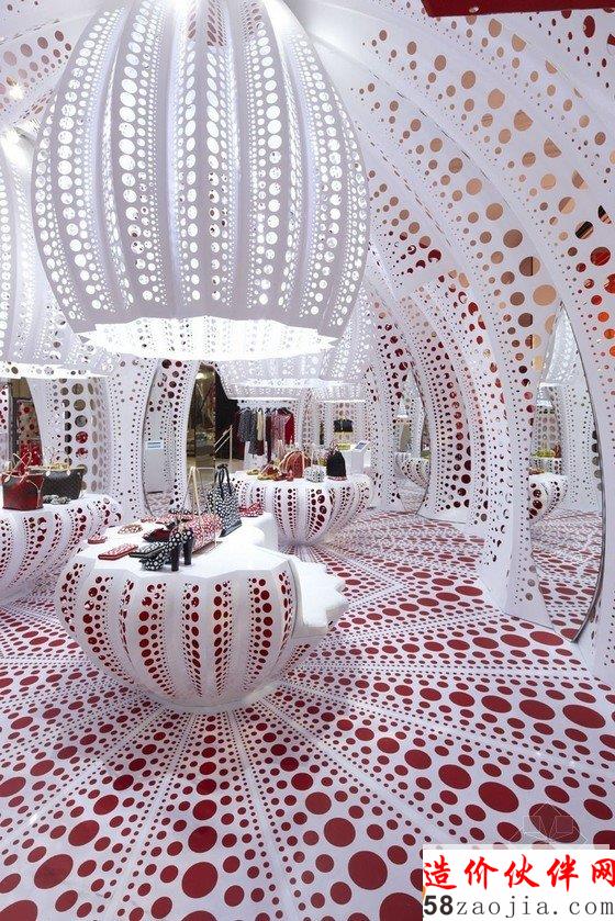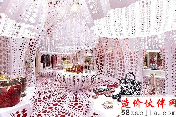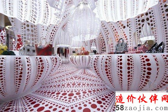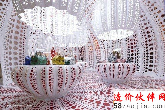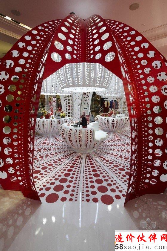 著名设计师草间弥生为路易威登店铺室内设计在英国伦敦塞尔福里奇街上的店铺内部进行了独特的空间设计。