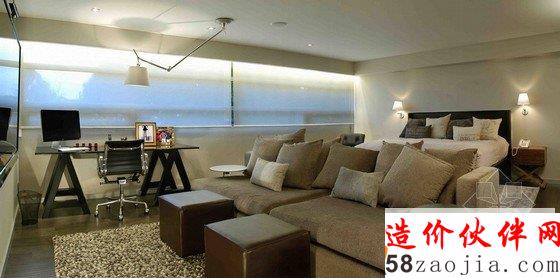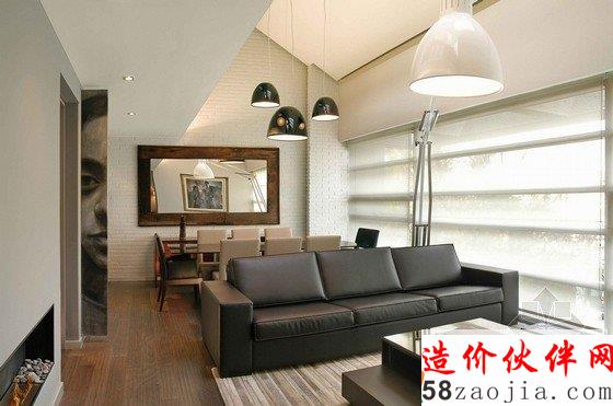 一直以来,事务所经手的项目都能很好地体现出顾客的身份,这个住宅也不例外。这栋住宅属于一位单身人士,房间内的装饰陈设都很符合单身住户的日常生活需求。两倍高的客厅兼餐厅是房子的中心,户宽敞明亮,成就了良好的室内光照情况。设计师保留了建材的自然色调,相互配合形成和谐的室内色彩搭配方案。楼梯上的巨幅画,专为这栋住宅定制的纯手工地毯和书架等细节非常突出。