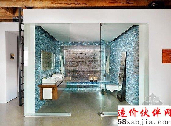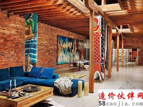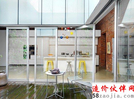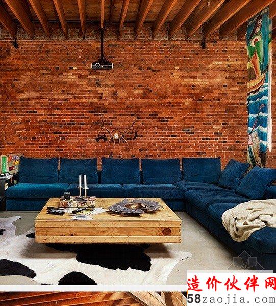 该项目位于温哥华历史悠久的盖斯镇区,一个开放的全新的别具一格庭院住宅,插入空间结构,允许大量的光线进入。蓝色的沙发别具一格,很有特色。
