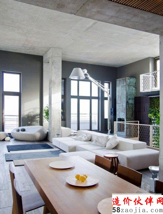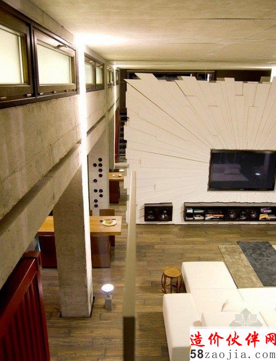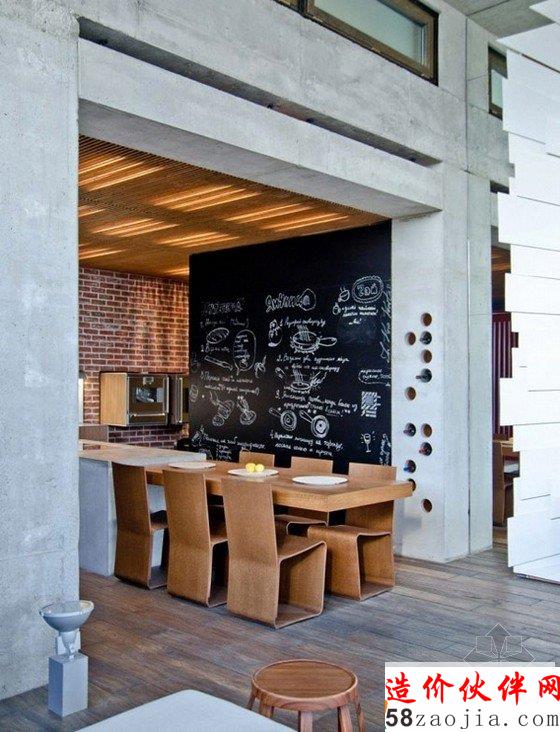 这个独特混搭Loft住宅室内设计很好地体现了多材料和质感的混合,在这里,不同的形状、颜色、材料和质感配合得天衣无缝,形成这处独有的舒适loft住宅。独特混搭Loft室内设计本来属于工业风格的建筑,共有三层,设计师在其中融入了非同一般的装饰元素。在主要的生活区内,我们可以看到木材、混凝土、玻璃、金属和裸露的砖块,在独特的细节装点下更加凸显各自的特色。不同的风格在这里猛烈的融合、碰撞。客厅和餐厅里有一面绿色植物体墙壁,使室内充满生机,上方是一个小的平台。电视墙是一面带有射线纹路的墙壁,客厅里还有许多类似的迷人细节,排列模式模仿盲点的酒架等等,都体现了别样的格调。