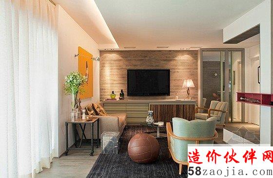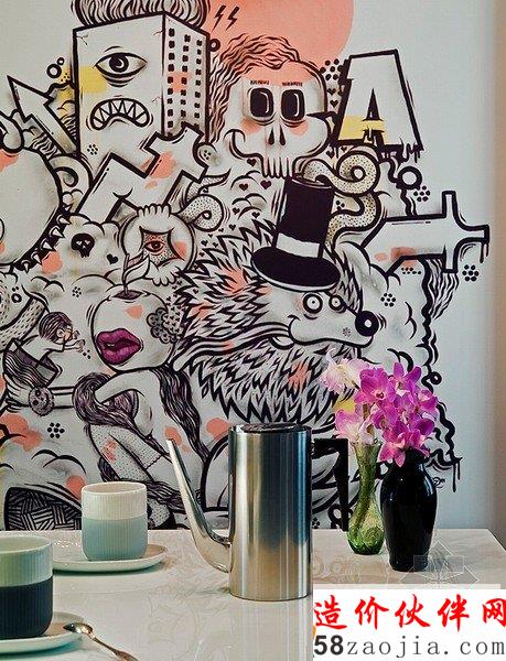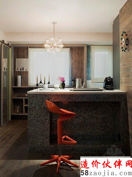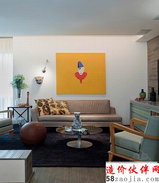这是 Fábio Galeazzo 完成的一个现代公寓翻新室内设计,位于巴西。设计师将这个90平米的现代公寓进行了彻底的翻修,并使用了可持续材料。公寓室内设计厨房的墙壁被挪掉,并替换成一个绿橄榄玻璃样式的餐台。在侧壁有一个年轻的艺术家的涂鸦。