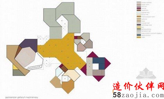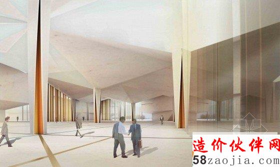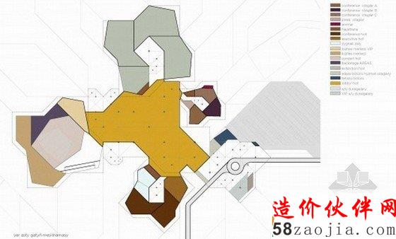五个建筑体块的设计源自对用地的分析和对土库曼斯坦传统建筑的理解和发展。那些体量和标志性的形状不仅代表着古代建筑的遗迹,比如莫夫遗址,同时也解决了当地室内外温差过高的问题。每一座单体都根据功能的需要具有不同的尺度和高度,内部公共空间的功能也各不相同,包括会议室、会议大厅、展览区、1800座的礼堂和行政管理办公室。