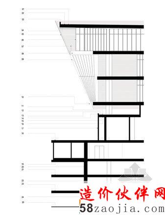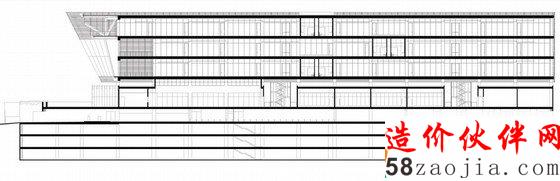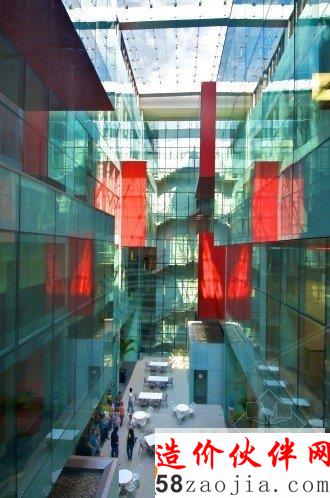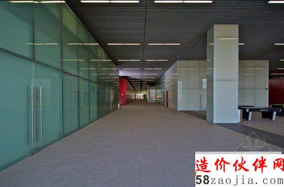 第二项挑战是关于公司的运营,这座建筑每天要接待大约2000个客户,同时要遵守银行内部严格的安全制度。所以将所有办公空间都置于二层以上的体块中,地下室是能够停放800辆车的停车场,他们中间的部分是一层开放的对外服务区,满足了对外办理各种业务的需要。这一开放空间有助于引导人流,迅速的分散到各个清晰便捷的窗口。