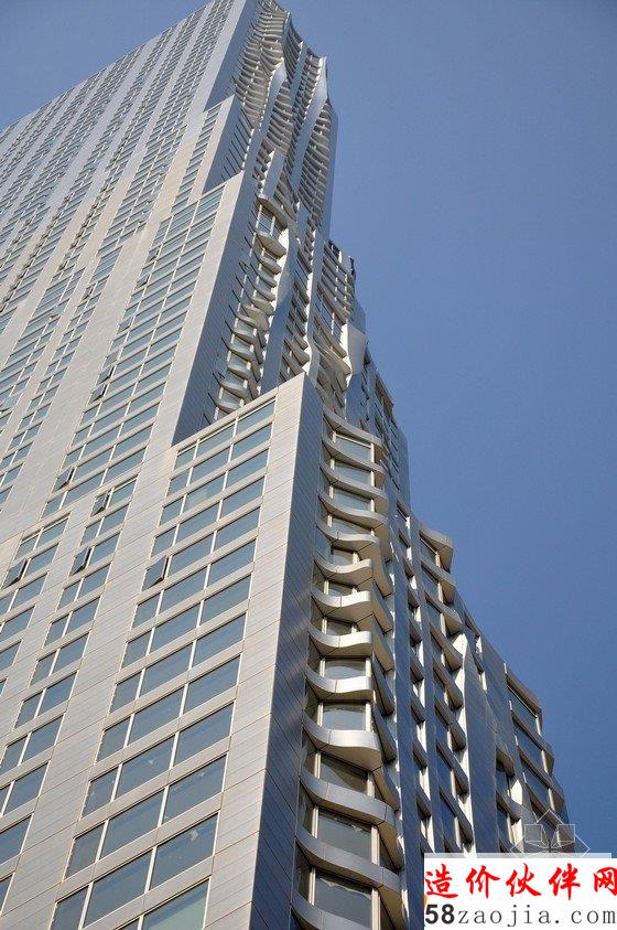 Eight Spruce Street由著名建筑师(Frank Gehry)主持修建,高265米,由76层组成。整栋建筑被1万多块形状各异的不锈钢面板覆盖。这就意味着,人们每换一个角度都会有一种截然不同的感受。