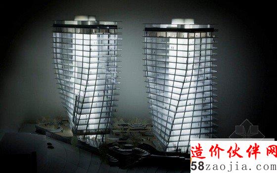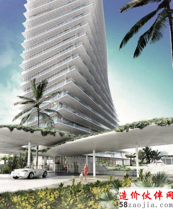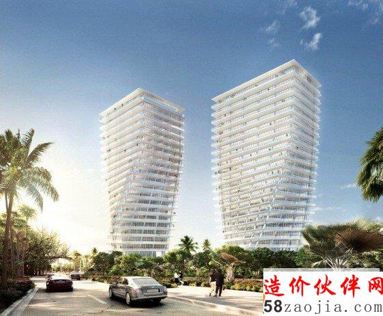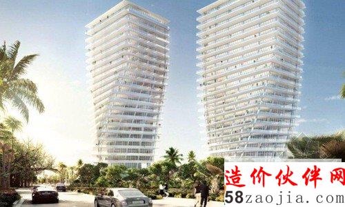 这是由,Raymond Jungles, Nichols Brosch Wurst Wolfe & Associates, Esrawe, Desimone, HNGS联合设计的南佛罗里达迈阿密旋扭的双塔。