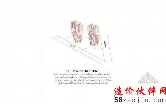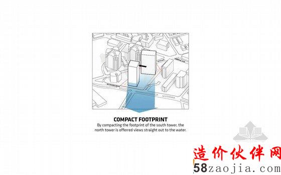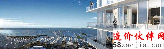 建筑拔地而起,20层高的旋扭双塔配备96套豪华住宅,巧妙的建筑结构有效避免互相间的视线遮挡,让不论处在任何位置的单元都拥有对于从帆船码头,海湾到迈阿密天际线的全景视野。交相辉映的双塔就像在城市天空中舞动。