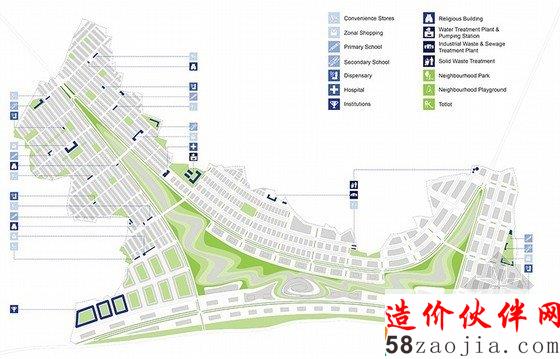 这是由studio symbiosis设计的印度这个穿越了恒河的一块复合型的发展用地。规划设计绵延了超过1156英亩的土地,将作为一块复合型的发展用地。studio symbiosis在恒河沿岸设想了一个图形化的城市图景。原有城市的肌理采用了数字技术进行全面研究,其图底关系仿效了恒河的图案并将其转化为中央绿地系统。这一中央绿地是该规划概念上的最大特点,将会作为居住区的绿肺,为那里带来良好的环境。