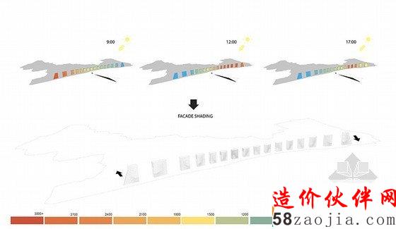 在方案中心位置设置了一个汽车会展中心,位于绿地之中,靠近步行街,将成为当地最显著的地标性建筑。在复合区内创造出了一个功能丰富的城市广场,同时汽车展览和汽车销售是两个各自独立的最重要功能,所以分别采用了两条连续而不想交汇的坡道作为两个部分的通路。土地的使用分配包括商业用地、工业用地、混合型用地、居住区和公共服务设施。根据目前印度的情况,特定设施参考了一定的参数以避免过度建设。所有这些规划上的功能要求都被统御在视觉上连贯的系统之下,形成了连续和谐的天际线。一系列标志性的大厦将会沿恒河而建,这些商业或综合体建筑的高度多为100-140米,外部形体模式采用了日照软件进行了分析以降低室内的能量损耗。