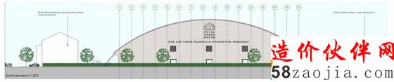 这是由Nicholas Hare Architects设计的英国皇家歌剧院。该车间主要作为道具生产装配车间,位于英国埃塞克斯的一处新用地中。建筑的功能包括一个大绘画车间,用于制作竖向和水平的布景画,此外还有木器和金属的作坊。