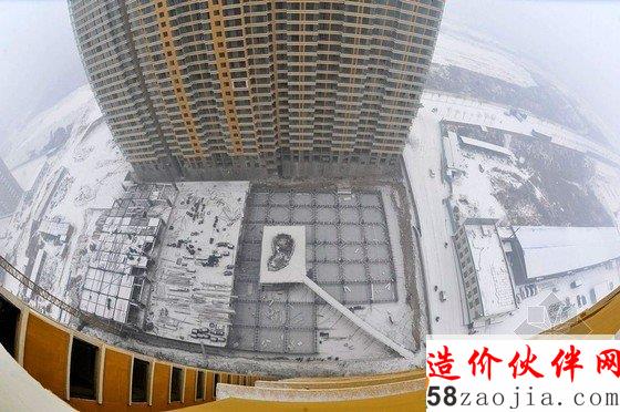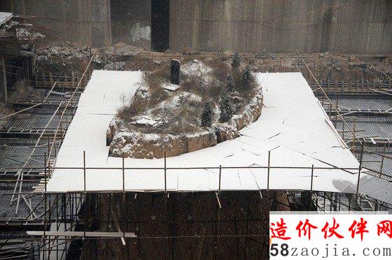 2012年12月13日,太原龙堡村在建小区工地,“钉子坟”旁边已经搭起一条由脚手架组成的迁坟通道。