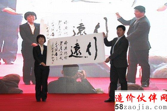 首先,伴随着优雅的音乐和主持人甜美的解说,所有到场嘉宾共同回顾了“建筑产品选用技术”从开创事业到实现蓝图设想,从历经风雨到回报社会,从创新突破到硕果累累的十年历程。随后,“建筑产品选用技术”的第一任负责人何少平女士、上海市建筑科学研究院(集团)有限公司装饰装修材料检测部副部长戚春元先生、以及江苏凯特尔新型复合饰材有限公司和山东瑞源特种建筑材料有限公司等企业代表代表纷纷上台道贺。山东瑞源公司表示,当企业在遇到困难时找到了标准院,依托标准院强大的技术支撑,实现了跨越式发展,为表示感谢,公司特邀请著名书法家在活动现场挥毫泼墨,向标准院赠送墨宝三幅,并以“远行”二字作为对“建筑产品选用技术”事业的祝福。