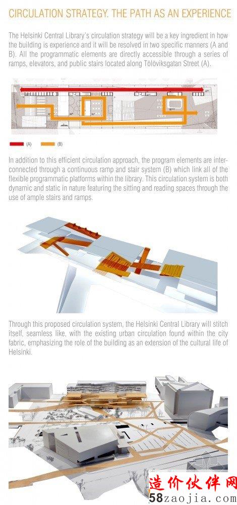 这是由STL Architects设计的赫尔辛基图书馆方案。赫尔辛基,这个不断变化并致力于推动文化的城市本身正是STL Architects设计的这座图书馆方案的灵感来源,假如图书馆是一个汇集知识并向公众传播知识的地方,那么赫尔辛基本身就是世界上最大的几座图书馆之一。