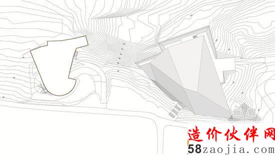 这是由Delugan Meissl Associated Architects设计的爱尔兰节庆礼堂。这座节日庆典礼堂的几何形态是根据当地的地形条件而来,形式和位置都源自当地岩层形成的令人难忘的景观和相邻的现有建筑充满动感的形式。新旧建筑之间相互契合,通过相互作用补足并提升了对方的存在感,使得对方与周围景观的融合更为完美,提升了周围自然的品质和建筑环境。除了其几何形状,颜色也加强了新旧建筑之间的二元性,白色建筑在夏季的节日庆典中跳脱出来,而随着季节的改变,新建筑会变的更为引人瞩目。