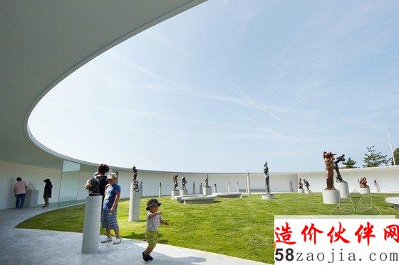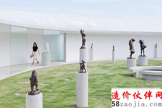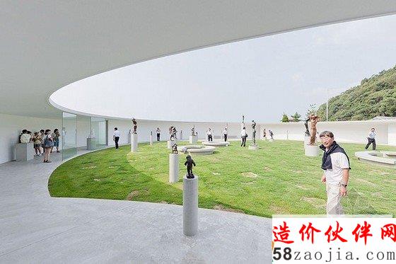 由钢构建筑和银色金属建筑组成的伊东丰雄建筑博物馆toyo ito museum of architecture迎来了由建筑师伊东丰雄设计的第三座建筑,“岩田健母与子博物馆”,它位于临近的今治市,与伊东丰雄建筑博物馆的其它建筑配套完成。这些建筑物都有相同的精神和概念,但却讲述了三个完全不同的故事。没有屋顶的圆形混凝土建筑在剖面上形成了一个正交的C形,它向内部的绿色草坪开放,上面还点缀了岩田健创作的“母与子”系列雕塑。