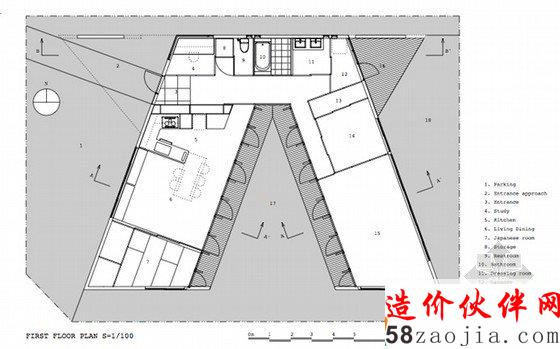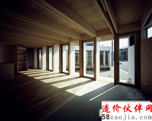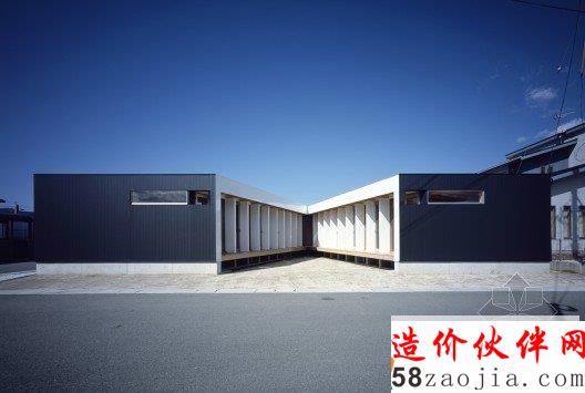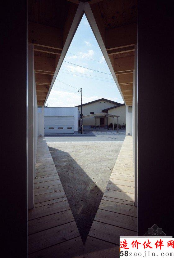 这种典型的小规模在日本是鼓励发展的。该客户要求三个外空间:停车场,庭院,和一个隐藏的从街上晾晒衣物的空间。客户对于V形计划,这种最简单的形式感到满意。通过这些散热片,内部空间是从街上很难看到,但家庭之间的公共空间和私人空间,通过院子里的东西方向的视线。虽然结构基本上是日本传统的木结构建筑,2×4维束,因为经济原因。东部和西部的木结构建筑方法混合。
