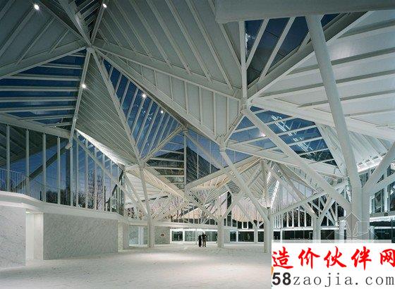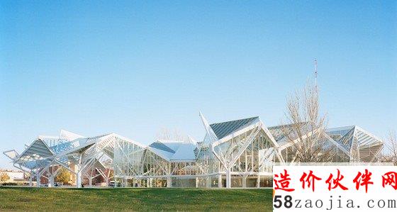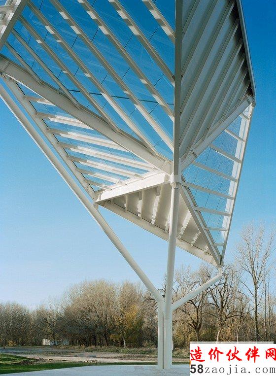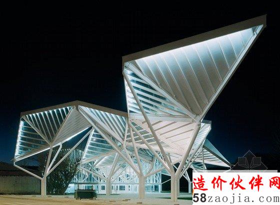 来自西班牙马德里的事务所moneo brock studio希望能重新通过一片钢构家和玻璃森林来恢复jucar河与moscas河边界上荒废的自然景观。建筑师以周边的森林景色为灵感,设计出了抽象化的森林屋顶,所有功能空间都被包裹在它下方。23个五边形的模块作为周边灌木丛和城市结构间的介质,利用破碎的建筑材料清晰地建造出几何形的公园剧场。透明的,水晶般的外立面掩盖了屋顶下方的椼架。35英亩的基地成为各种活动的场所,它由变化的光线和带屋顶的空间过滤组成。透明度不同的玻璃将景观,阳光和人类活动统一起来。