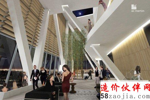 世界级塔的目的是重新定义高层酒店,其独特的70楼空中大堂以及屋顶娱乐和餐饮。酒店内包括900个国家的最先进的四星级酒店客房,为洛杉矶带来了新的水平。