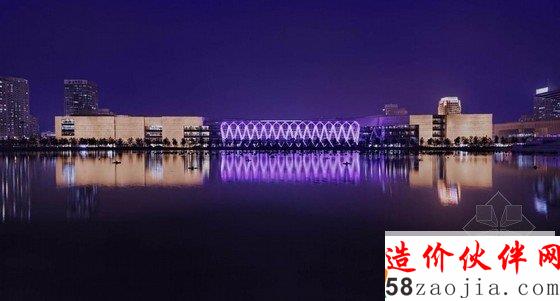 沿着一条长长的弧线安排,复杂的焦点是一个水晶建筑特征的餐馆。建筑的玻璃里面是综合商厦的雕刻图像,在湖的对岸创建一个互补的建筑边缘,同时保持了视觉的显著性和歌剧院的重要性。