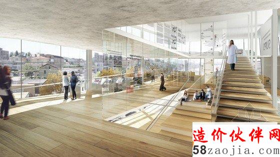 这个校园与城市间横着一条昂贵的铁轨,本是建筑的一大障碍,这栋建筑通过“空中台阶”及大型地下通道,将校园与城市跨越铁轨连接起来。该建筑不仅具备学校的各项基础设施要求,同时考虑了当地的地形景观特点,开创了当地城市建筑又一新的类型。预计这栋建筑的北边部分将被辟为项目场地,将会极大促进未来城市的发展。