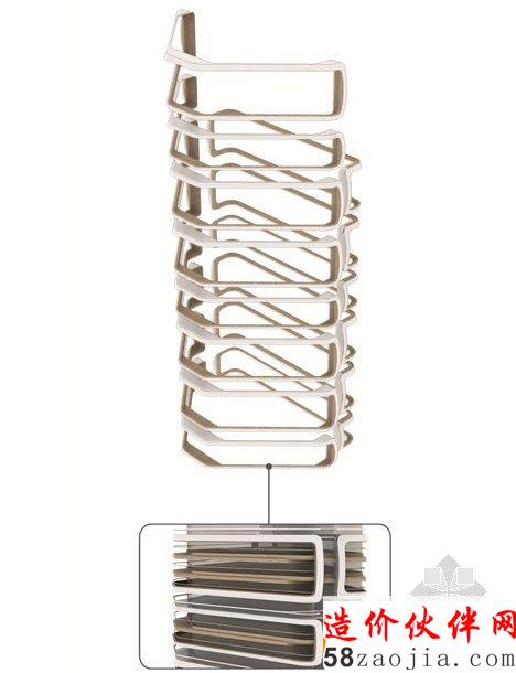 创始人van Berkel既注重内部的家具设计,也注意建筑的外观设计。他说,“建筑外观质感很好,给人与众不同的感觉;这可能跟我爱好家具设计有关,我总在思考着怎么把内部设计特点延伸到外观上去。”这座建筑将包括190栋公寓房,一个健身俱乐部,一个游泳池,一个私人影院,一家餐馆及住户俱乐部。预计2015年完工,届时将开始发售第一栋公寓。建筑事务所Foster + Partners以及SOM也都计划在该区域建造住宅式塔楼。开发商指出这是因为该区数码产业发展迅速,一位负责人说“古老的街区正焕发着工业科技与创新的活力,这也要求附近的居民建筑更有特色。”
