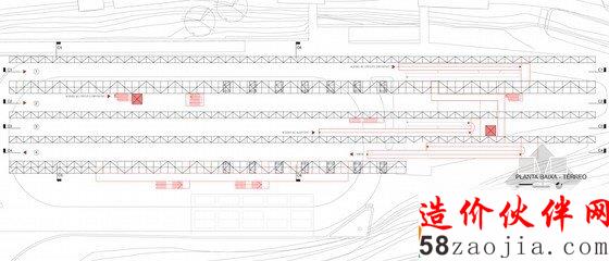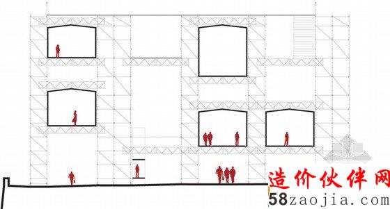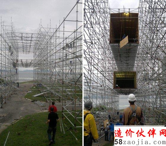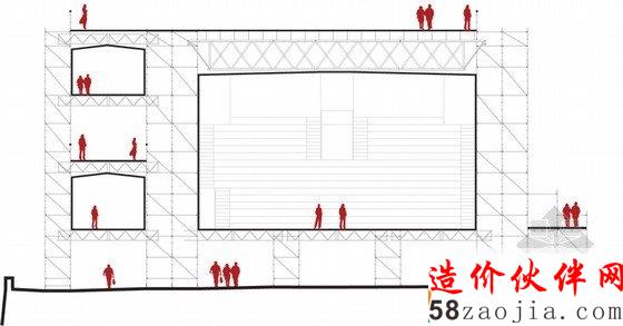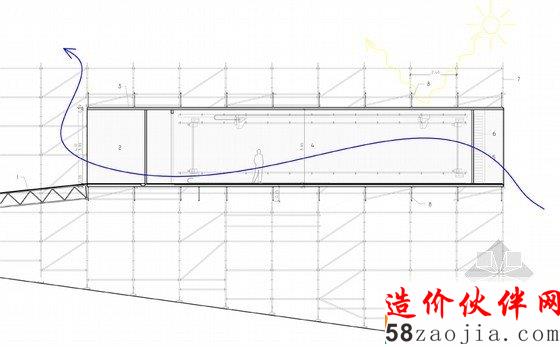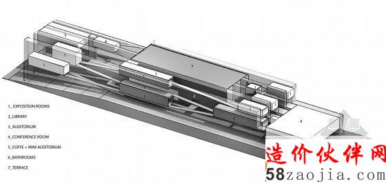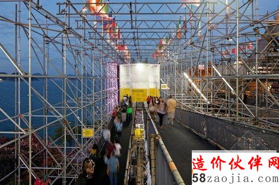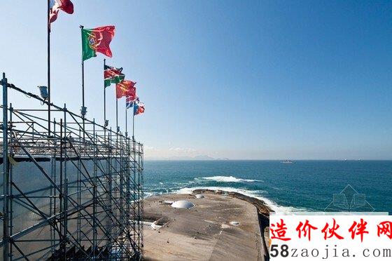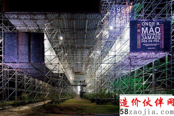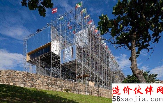 建筑师Juaçaba想要建造一个暴露在外的、多层次的半透明空间,一提醒使用者在面对自然时人类的脆弱。五面结构墙长120米宽20米,在里约城市上空建造了一座人行天桥,中间插有展览厅,也容易引发人们的反思。另外,该建筑的房间算的上是一道屏障,它们的硬度可以在关键时刻起到加固展厅的作用。为了与会议中所倡导的、橱柜中所展示的可持续发展理念相一致,该建筑用的都是之前使用过的脚手架,完全是可循环利用的材料。