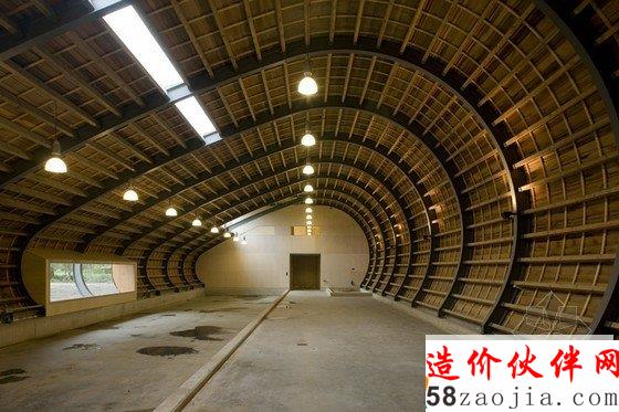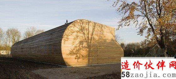 这里约有80头羊每天“漫步”森林、田间或者公园,铲除各种野草。为了将绵羊们聚集起来,阿尔默勒城需要修建一座羊厩。这座羊厩被设计成一个不对称的均匀的横截面。建筑物和覆层都是用木制成,只有弯曲的梁是铁制的。这样做的原因是为了强调内部管状形态,这种形态的结实性只比两倍木质的梁差一点点。