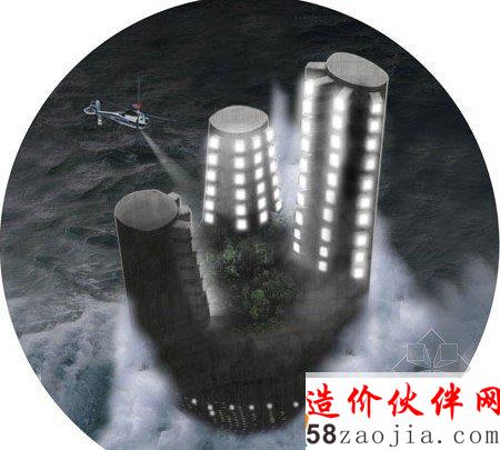 二等奖获得者是立陶宛的建筑师Kristijonas Skirmantas、Povilas Zakauskas 和Tomas Vaiciulis。他们用不锈钢和玻璃打造了“浮标监狱”的设计方案。一个结构环、矩形的模块和承重梁是三大主要部分,利用可移动的模块,可以增添新的梁柱,或者很容易进行改造。天然的波浪被用作发电的动力,利用BUOY系统,通过潮汐涨落来驱动水压泵。