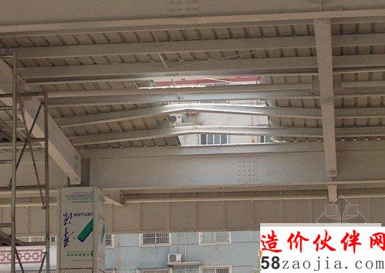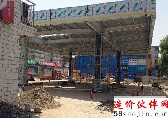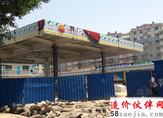 爆炸的气浪把加油站顶棚冲开一个大洞