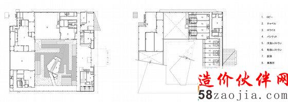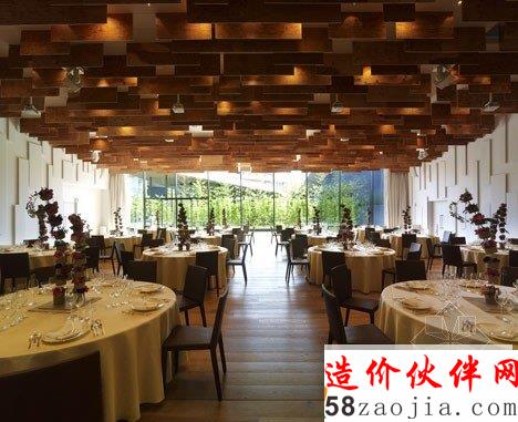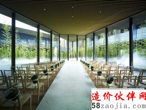 设计师将客房和用餐区环绕着一个中央庭院和婚礼堂放置。从入口的木篷进入酒店接待处,会通过一个美丽的庭院。设计师设计的这个“平和安宁的环境”,里面种着竹子,还有一池碧水,在这幽静的环境中间,正是玻璃婚礼堂。这座宫崎县的花园露台酒店包括一个单独的两层建筑,由竹包的墙壁和大型坡屋顶和飞檐。优美的坡屋顶罩在这个两层建筑上,房间都藏在深深的屋檐下。餐厅和活动室都环绕庭院而建,客房都在二楼。