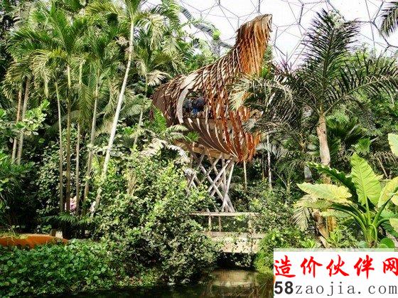 这个建筑有高起的走道和地面,成为伊甸园工程里热带雨林区新的走廊。这个树屋是与Jerry Tate建筑事务所合作完成的。人们可以在木头和钢架的高层走廊里,充分体验热带雨林的生物群落。屋子在两座长达16米的桥中间,有木屋顶覆盖,将被用作热带雨林生物多样性的教育基地。这个建筑将在三年内分阶段建成(第一阶段预计今年6月开放)。等到建设资金到位,未来还会建起一个蒸汽朋克装置(受气象站启发)、一个研究站和一个水帘洞。