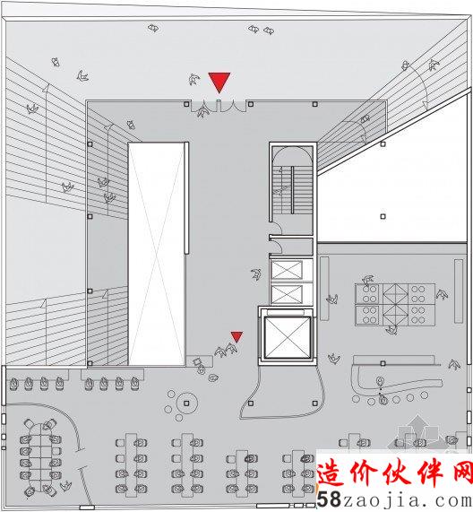 这里不仅是人们悠闲地欣赏建筑之处,还可作为一些艺术品的展示台。展览厅面积为300到500平方米,是由多个宽敞而高耸的空间组成,用来陈列各种类型的艺术作品——从陈列古典画作的白立方画廊,一直到有着间接自然照明的摄影展。除此之外,展厅内还有一个用于安装和放映视频的“黑盒子”空间。礼堂部分被设计成一个十分具有弹性的空间,可作为各种节目、舞蹈、歌剧、会议、工作室甚至是电影放映的场地。礼堂中的活动坐席能在最大程度上使在座的200名观众均能看到舞台上的表演。而一旦将活动坐席缩进房间的后部,礼堂便可成为演唱会和其他盛大活动的理想场地。舞台被稍稍向上抬高,后台的面积恰到好处并且在一些重要活动需要时还可打开与礼堂相通。