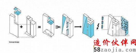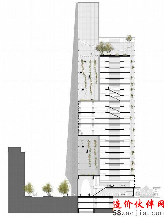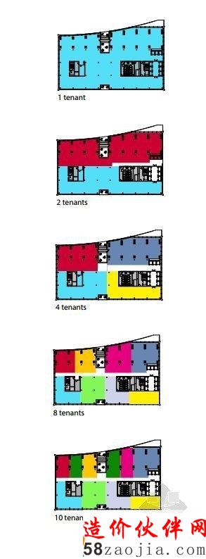 关于BG14大楼原本死板重复的平面布置,建筑师将通过灵活布置优化它,比如可以将大办公室面积设定为40平米,拥有外部景观的个人办公室为11平米,或者将整层布置为15平米办公室的阵列,从而满足不同规模的租用者的要求,达到更好的经济效益。