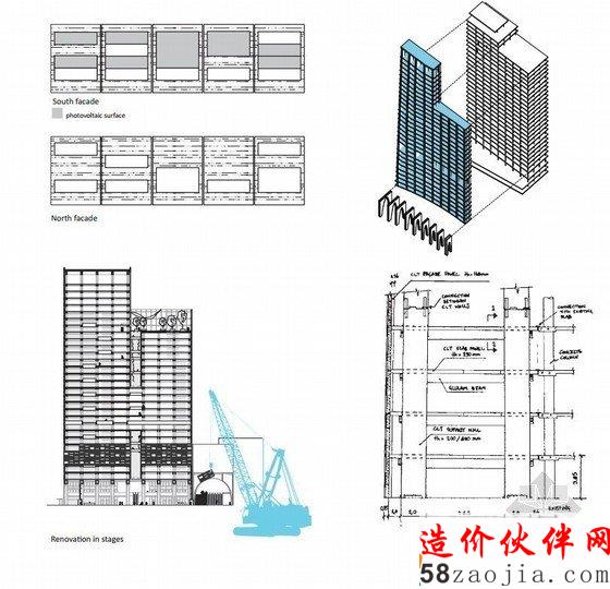 为了不破坏BG14大楼本身的经济性,新的扩建项目必须选择在旧建筑的北面展开(应该是出于采光与能源的考虑——译者注)。扩建的新楼将在BG14大楼本身提供的2000个办公室的基础上增加至5000个,同时还有21000平方米的附加空间。同时建筑师还想通过这个项目建造全世界最高的木结构建筑——这并不是突发奇想,而是在环境效益与经济收益之间综合考量的结果。建筑师认为,合理运用木材料可以加强建筑功能性,让它变得聪明而富有美感,这也是传统北欧式建筑的思路。目前的结构研究也证明使用全木构是可行的。