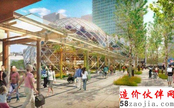 在NBBJ设计时,所有建筑被重新打乱排列,并增加了三个大型温室。这些圆球状温室,最大的直径可达39米,最小的约24米。内部有工作场所、餐饮区、会议室、休息室和零售店等等。植物区有各种各样的植物,包括高海拔地区的野生树种(最适生长温度约20摄氏度)。高透明的刚和玻璃结构有助于室内采光和空气流通。NBBJ的这个项目满足了绿色建筑最高认证(LEED Gold)的要求,最大限度地减小能源消耗。这个透明建筑成为了周边地区新的景观点,同时避免产生过多的阴影。《西雅图时报》报导说,亚马逊公司和NBBJ这周将会与城市设计审查委员会商讨这个方案。虽然这个方案确实比旧址现状改进不少,但各方面还是对此褒贬不一。