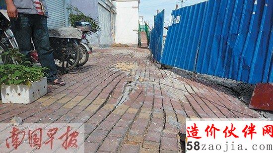[提要] 南宁市凤岭南路一单位宿舍区正在建活动中心,由于施工现场靠近居民楼,导致居民楼前的地面大幅下沉,燃气管道连续断裂,4栋楼的居民无气可用。” 生活区一居民指着12号楼的地基说:“根据目测,目前地基下沉超过30厘米,但不知道还会不会继续下沉,是否威胁到楼房和大家的安全。