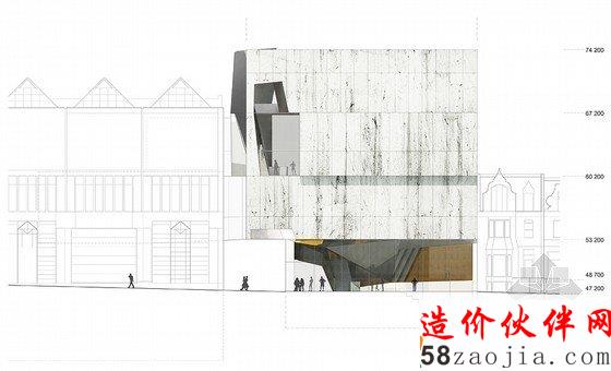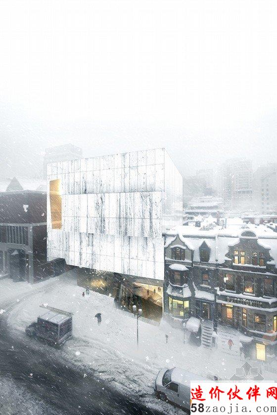 设计中,该分馆通过将一系列矿物岩层叠加,最终形成了一个霍恩斯坦艺术品收藏中心。分馆大楼悠然地漂浮在街道上空,大理石层相互叠加在一起,塑造出一个具有雕塑外观的立体空间。空间内部陈列艺术收藏品,成为奉献给下一代蒙特利尔艺术爱好者的理想胜地。最近,Saucier + Perrotte建筑事务所的该设计已宣布进入决赛。项目中使用了带灰纹的白色大理石,从建筑风格和质地上均与蒙特利尔美术馆其他分馆的风格十分协调。新馆简单的几何构造使博物馆所在的校园更为现代,并成为毕晓普大街上一座醒目的建筑,同时还为博物馆未来的建设进程提供了些许灵感。大理石的使用很好地捕捉到了该建筑项目的精髓——一座用隐喻的手法诠释出岩石的特质和自身在现代化的城市文脉中的地理姿态得建筑。大理石所众所周知的物理优势——乳白色的表面、既平滑又粗糙的质地——在历史上一直被人类高度美化。