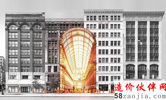这个“底特律隆重开放”的项目主要包括:通过刺激商业活动和鼓励客流量,创造一个独特的公共空间,吸引更多的商户和消费者。延长报刊亭、商场、餐厅、酒吧的营业时间多一些季节性活动和节庆活动,打造良好的购物聚会活动体验,这样人们无论日夜都会选择到这里来。提供优质的艺术和设计工作和公共展示空间,方便这个地区的教育机构、艺术社区和游客参观。重塑历史性的大规模旗舰店和这里的时尚、艺术和设计氛围。这里还为逐渐增加的人口提供了253户住宅和32898平方米的A级办公空间,改善现状的居住和办公空间。由于位于市中心的地理位置,这里的办公、住宅、商店和公寓的租金都很贵。节点二主要是通过连接两种公共交通方式,最大化地吸引人群。这个方案在底特律原有地城市肌理上发展起来,并不是将全新的概念生硬地加入,减少风险。