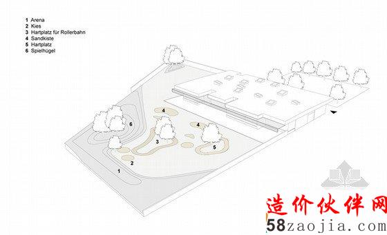 SOLID architecture设计的方案建筑结构明确:户外区域,东侧临街,北侧作为停车场和入口通道,不受交通干扰的西侧和南侧是孩子们专属的户外空间。