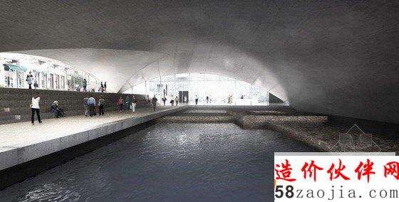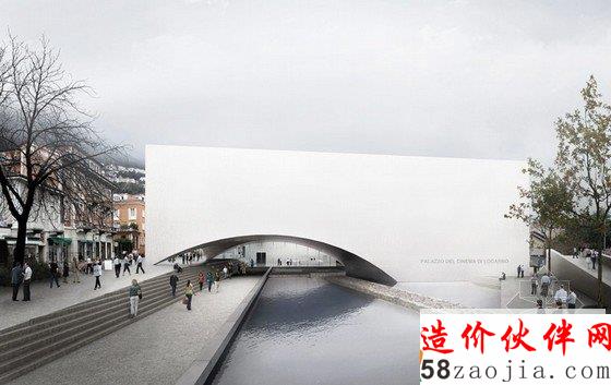 在一个滨水的场地中,campomarzio和w+w‘s设计的洛迦诺剧场保留了中世纪城市的遗迹,这里曾是维斯康蒂城堡和里维利诺的所在地。这个曾经坚的水上固口岸作为maggiore湖综合体项目是前瑞士城远景设计的一部分。为了保留完整的城墙,这个项目设计在遗迹的洪水线以下。这个剧场也是一个避难所,想象力和超现实的结合让城市与历史、湖、公共空间建立起对话。对遗址的挖掘可能需要拆除bernasconi设计的学校,新的白色混凝土结构的新建筑将盘旋在考古遗址上面,形成一个拱形的巨大入口,这个体量是剧场的入口,并起到连接洛迦诺的最重要的2个空间的作用,城堡广场和大广场。