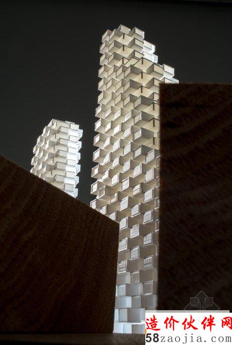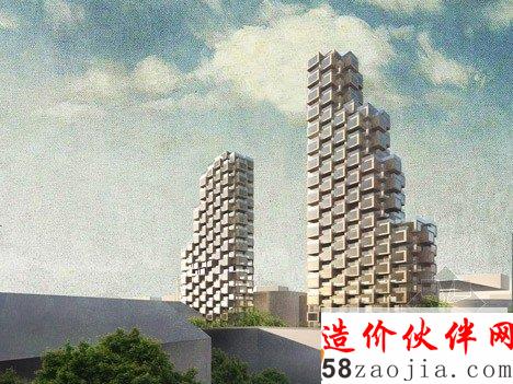 摘要:OMA设计的错落双塔在瑞典斯德哥尔摩摩天大楼设计竞赛中胜出。这个建筑位于Hagastaden街区,包括公寓、酒吧、展示空间(其中一个塔楼的顶层)、健身房、图书馆和底层商店。突出的居住空间从建筑的外部跌落下来,形成一系列互相遮蔽的阳台。OMA的合伙人Reinier de Graaf认为非正式的造型显示了人性化和生活化。OMA将和开发商Oscar Properties?一起建造这个100米的双塔,这是瑞典第三高的建筑。