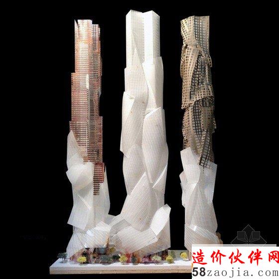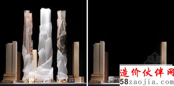 这个项目将包括三座超过80层的摩天大楼,它们将建在john和simcoe街交界处的标志性地带。事务所发布了这些摩天大楼的最新平面,它们现在更具弗兰克·盖里一贯的标志性风格。立面上设计了一系列断裂的有机图形,这些曲线形的表面像条带状的布料,相互折叠,在建筑底部创造了一个木梁框架。这三个建筑体量将容纳超过2500个居住单元,以及一系列商业和办公空间,一座巨大的美术馆来展示mirvish收藏的艺术品,同时还将成为OCADU的校园新址。预计这个项目将花费10年时间建造完成。