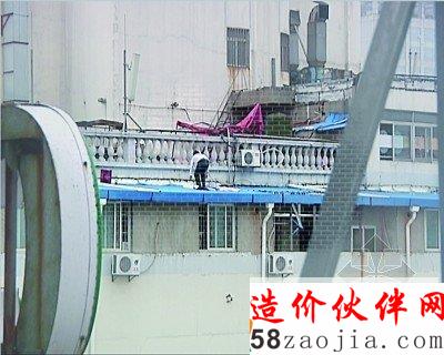 守 盖违建的王某为了保住违建,翻过栏杆,守在悬空30米的“屋檐”上,把自己置于险境。