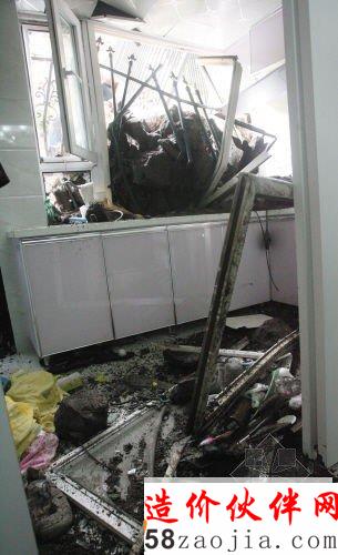 挡土墙下方一居民家厨房受损严重。