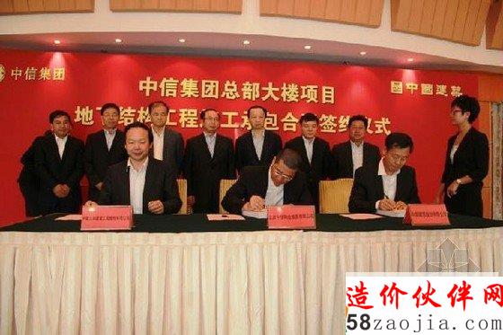7月9日,中国建筑联合所属第三工程局有限公司(简称中建三局)中标北京市朝阳区CBD核心区Z15地块项目(中国尊)地下结构签约工程仪式在北京京城大厦举行,签约金额6.7亿元。中信集团公司董事长、党委书记常振明,中国建筑工程总公司董事长、党组书记,中国建筑股份有限公司董事长易军,中国建筑股份有限公司副总裁王祥明,中建三局主要负责人等出席签约仪式。