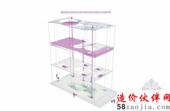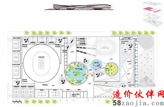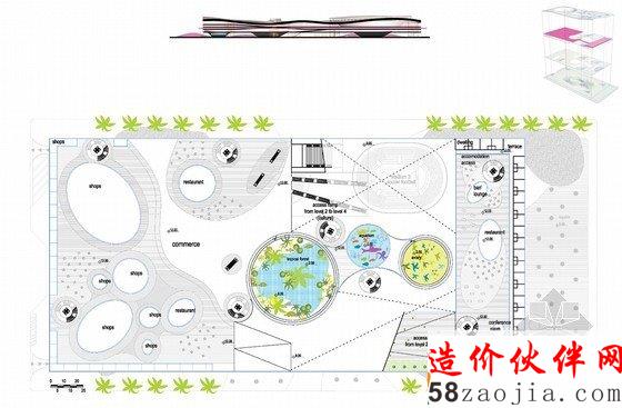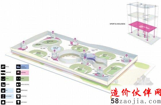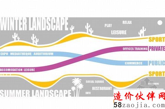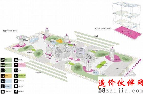 地处沙漠的中心,在大洋和炎热中得到一个喘息的机会是很重要的。通过提高这些建筑和地面的距离,一个大的有阴凉的广场成为了mizha社区中,人们购物和放松的好地方。在球场的一端,一个水族馆,一个鸟舍,还有一个热带花园穿过建筑。配套的商业,展馆,和文化节目,分布在四层以上。在屋顶上,重新建立了一个仙人掌花园,也创造了娱乐的另一区。同时也设有体育设施,零售商店,餐馆和教育的空间。这是迪拜的一个复杂的活动枢纽。