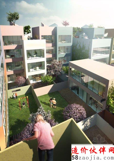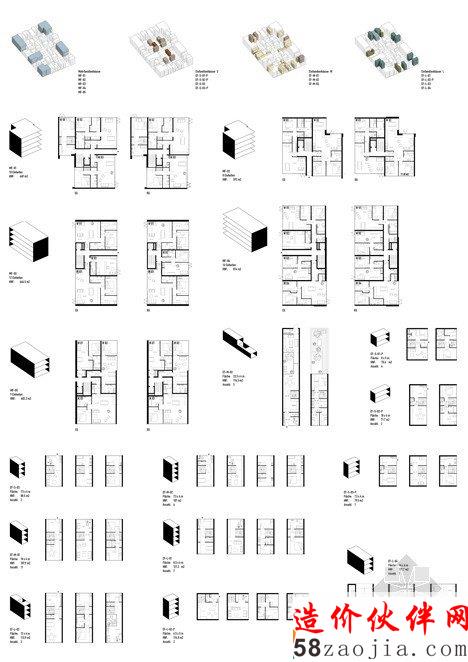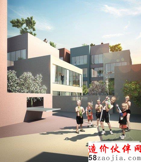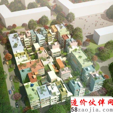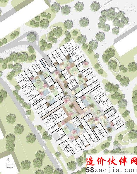 公寓楼计划在角落里发展,而联排别墅和小型住宅将被放在中间发展,建筑师们这样的设计是希望促进邻里交往。95座住宅将被划分成16中不同的类型。从30平米到130平米,并建造一个一楼到四楼的混合区。采用不同颜色的楼面设计,使得居住者们能够快速的找到自己的家。MVRDV与景观设计师Fontana共同设计了这一建筑的外部空间。果树将遍布整个花园,还有可拆卸的桌子,和长椅,以及可以折叠的兵乓球台。地下停车场的施工将于2015年开始。MVRDV与景观设计师Senn BPM AG和置业公司Wüest & Partner共同赢得了这次竞选。