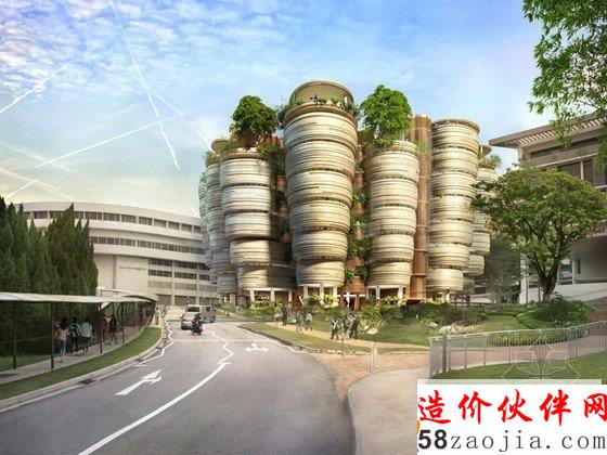 此学习中心是一个超过十亿元的学校重建计划,这一建筑是十四个校园建筑中,20年以来,第一个更新建设的项目。近来企业化的学院机构仍然是新加坡最大的教育提供者,特别是技术程序和认证课程。即将到来的学习中心必须反映三级教育体验和互联网民主化的需求。该设计反对大学见许需要艺术造型来点缀的理念。无尽的走廊和圆柱形状的墙面能够使日光在白天浪费了许多。所以在这个项目的55个教程房间,没有传统的走廊,和围绕中央空间连接在一起的塔。学生可以360度任意自由的进入中心,并且可以在同一平台上选择不同的花园与教授或者同伴们讨论学术问题。拥有绿色屋顶的上层建筑上,可以享受到裕廊岛和新加坡海峡风景如画的自然景观,该项目获奖的举措中还包括它在种植模式上选择亲水聚合物,这样的模式不需要独立的灌溉系统,更能节约水源。整个建筑内还有无处不在的照明,垂直绿化墙,地面是粒状的高炉矿渣和再生混凝土骨料。据报道,这一建筑将于2014年投放使用。