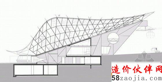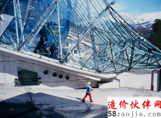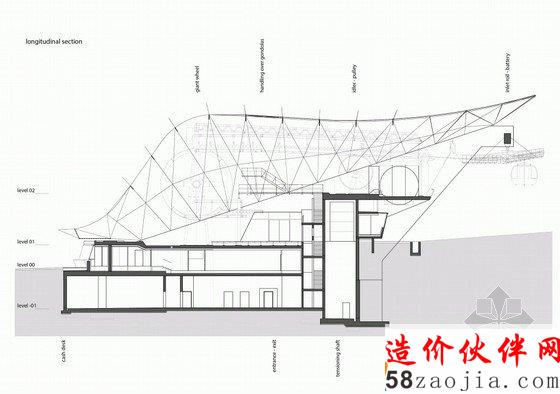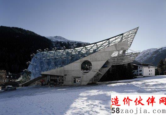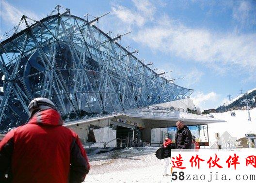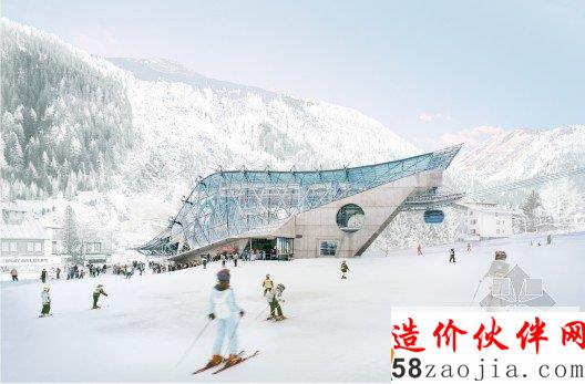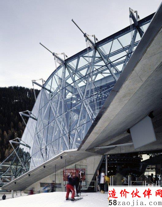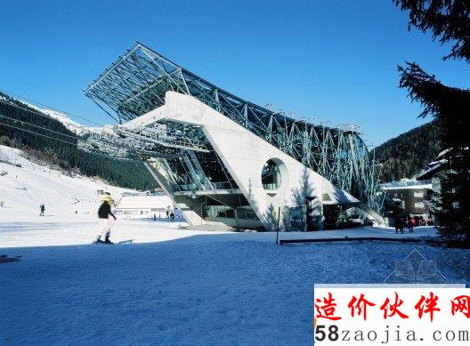 整个建筑阻挡风,雨,雪的效果颇佳。移动的建筑材料,巧妙的简约主义令Galzigbahn彰显了灵动的特性。一个船型的门庭设计,一个巨大的车轮引导客人们上到一层的地面。机舱转到相反的方向,乘客得到便利,连同平底和浮子以上的屋顶景观,都可以通过搪瓷空间观看到Galzig山。该计划将建设一个缆车,包括一个公共空间,还有需要付费的书桌存储柜,物流区,废物管理设施区,车库区将被设计在地窖中。主体是一个巨大的混凝土基座,南北的两面墙和一个玻璃的顶部覆盖组成的。这种天气保护外衣是跨越的,自己支撑的,整个建筑中,由于一个新的圆顶和一个三脚架支撑,则不需要任何连接点。使用空间衔架,在最大限度内优化了酒吧建筑的稳固。28个小屋/每24人一个小屋,最高速度6米每秒。